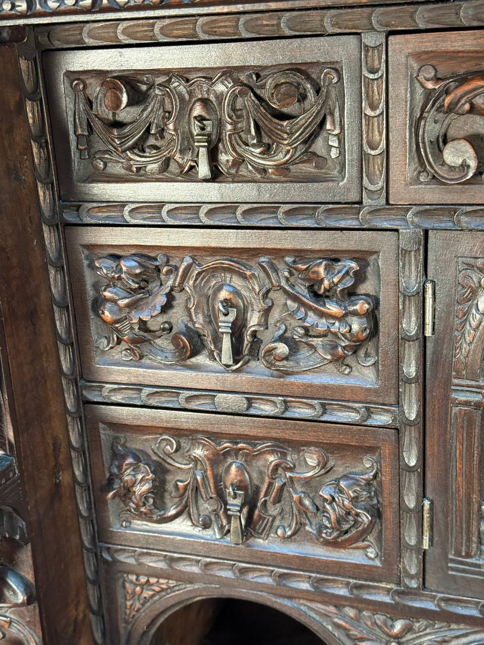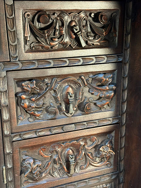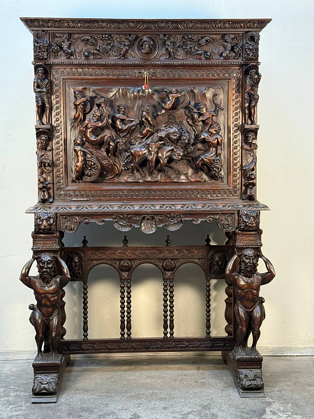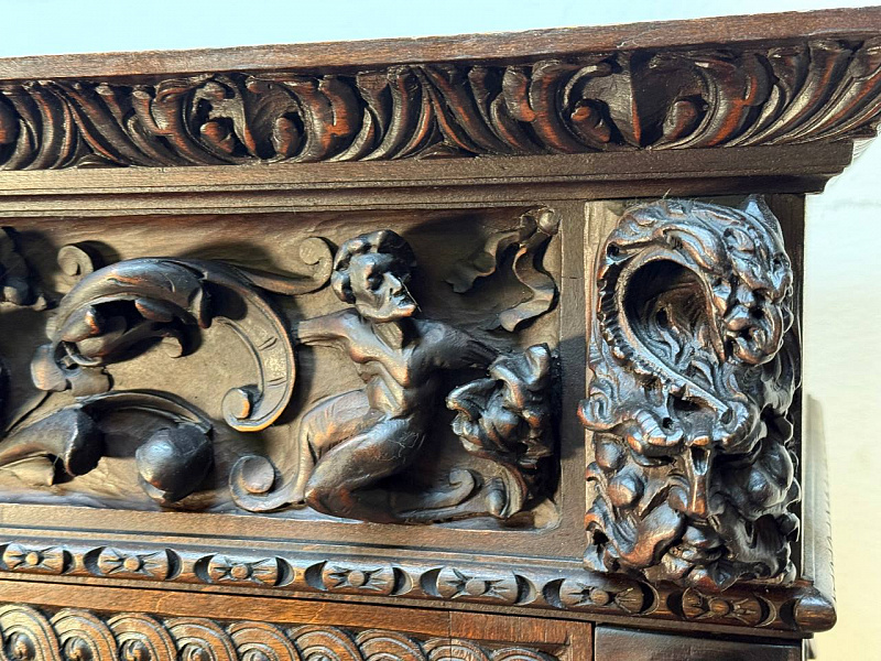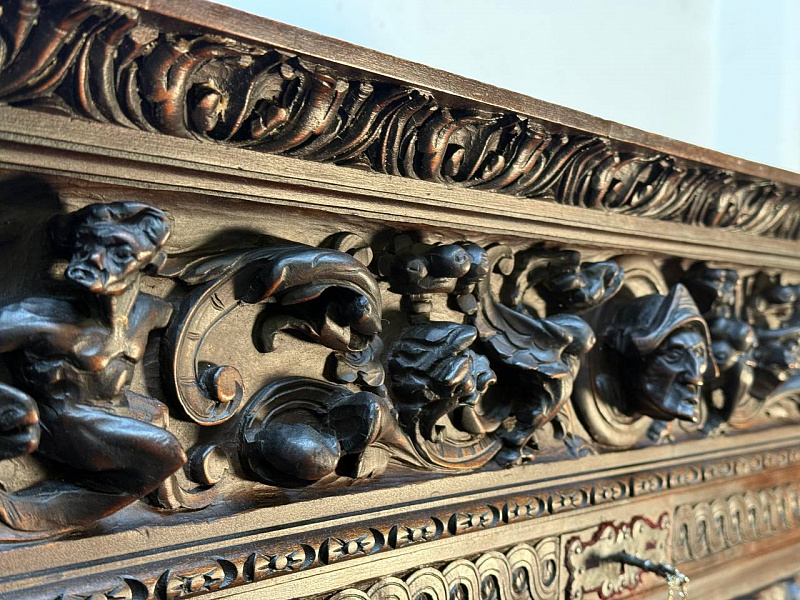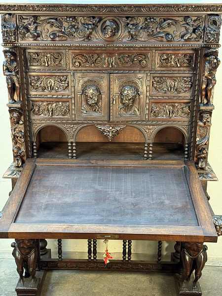 Секретер в стиле ренессанс. Уникальная работа и музейный экспонат, орех, резьба, 19в. Отличное состояние для своего возраста.