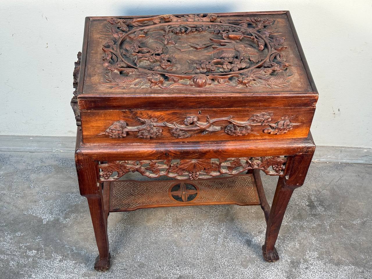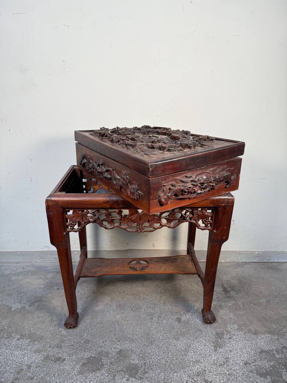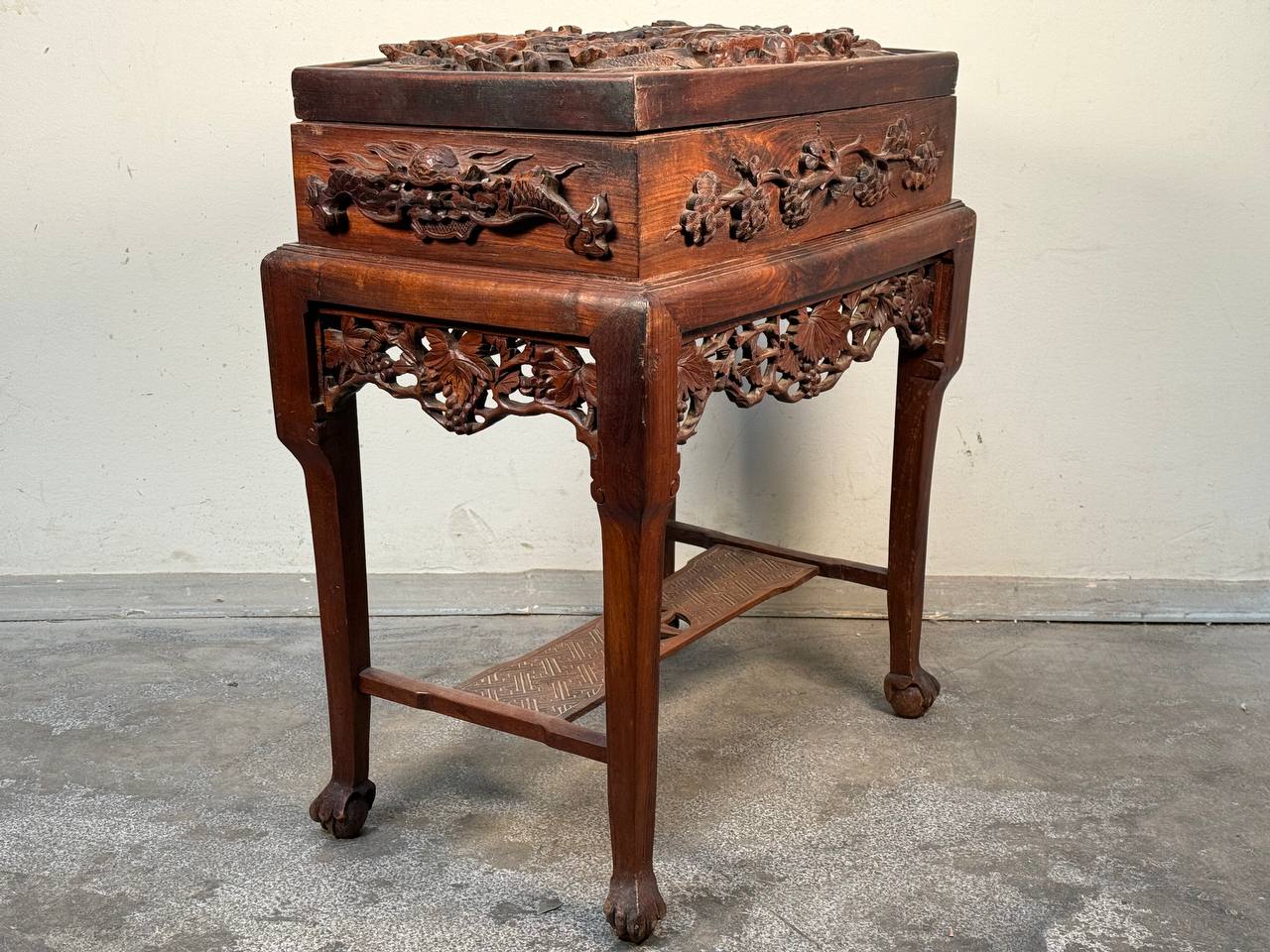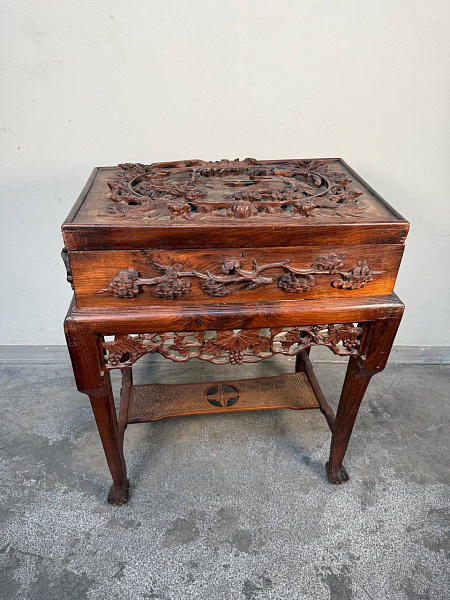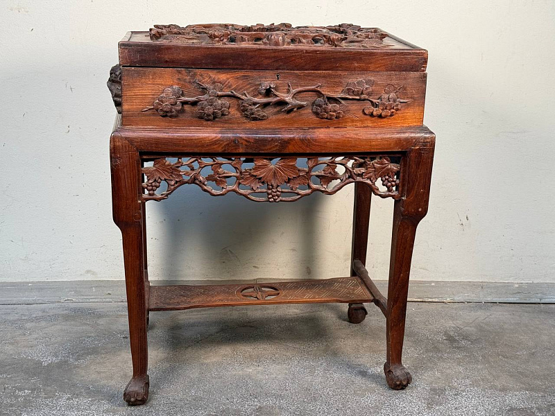 Чайный сундук с подставкой в стиле шинуазри. Шикарная резьба