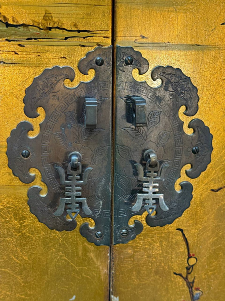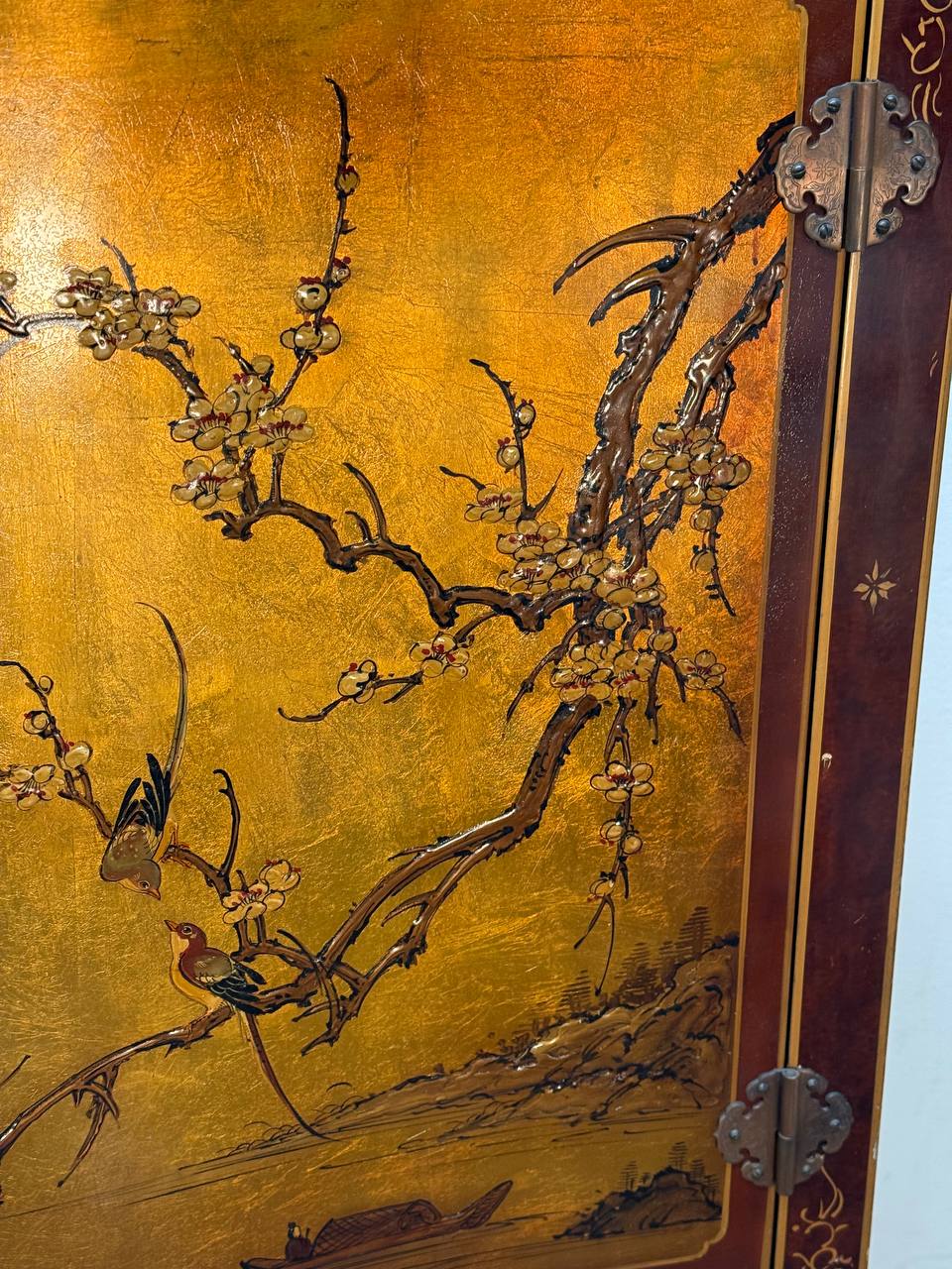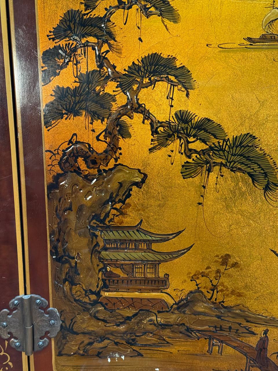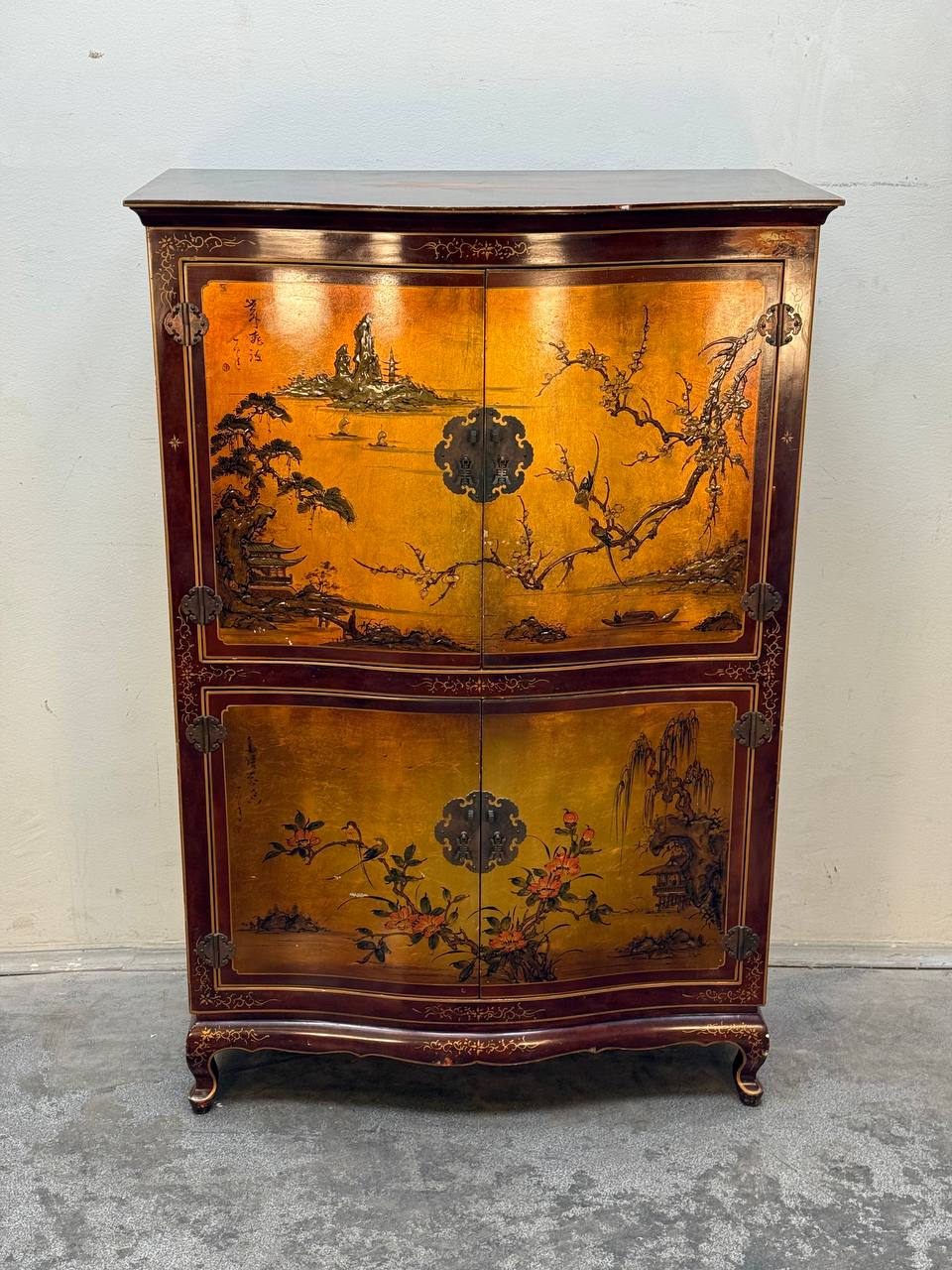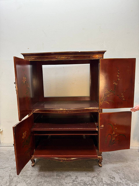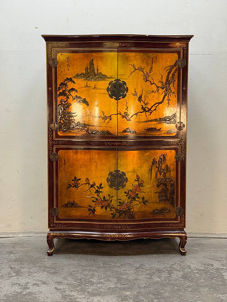 Высокий комод/шкаф в стиле шинуазри. Поталь/роспись. Размер 110/60/160в