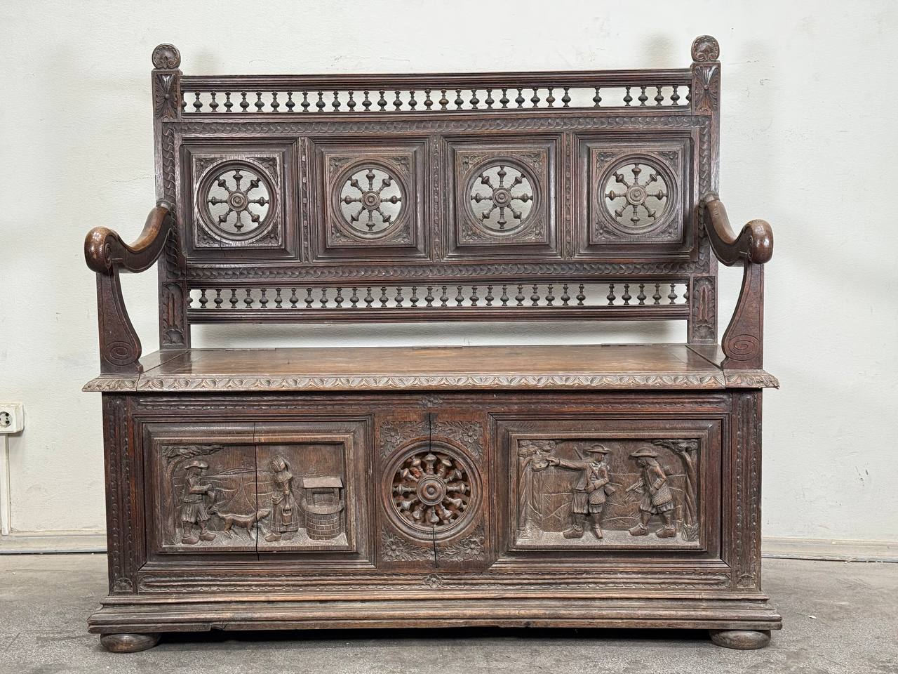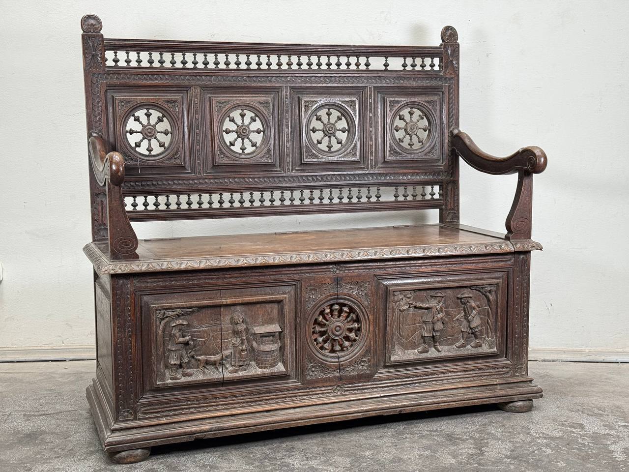 Скамья в бретонском стиле 19в, орех.