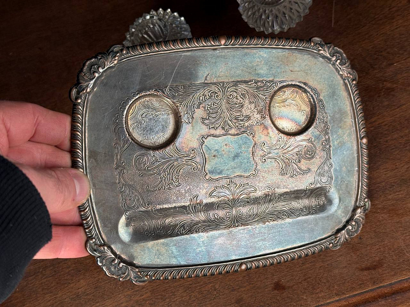 Подставка под соль/перец, посеребрение/хрусталь