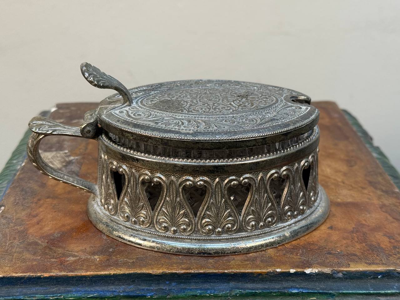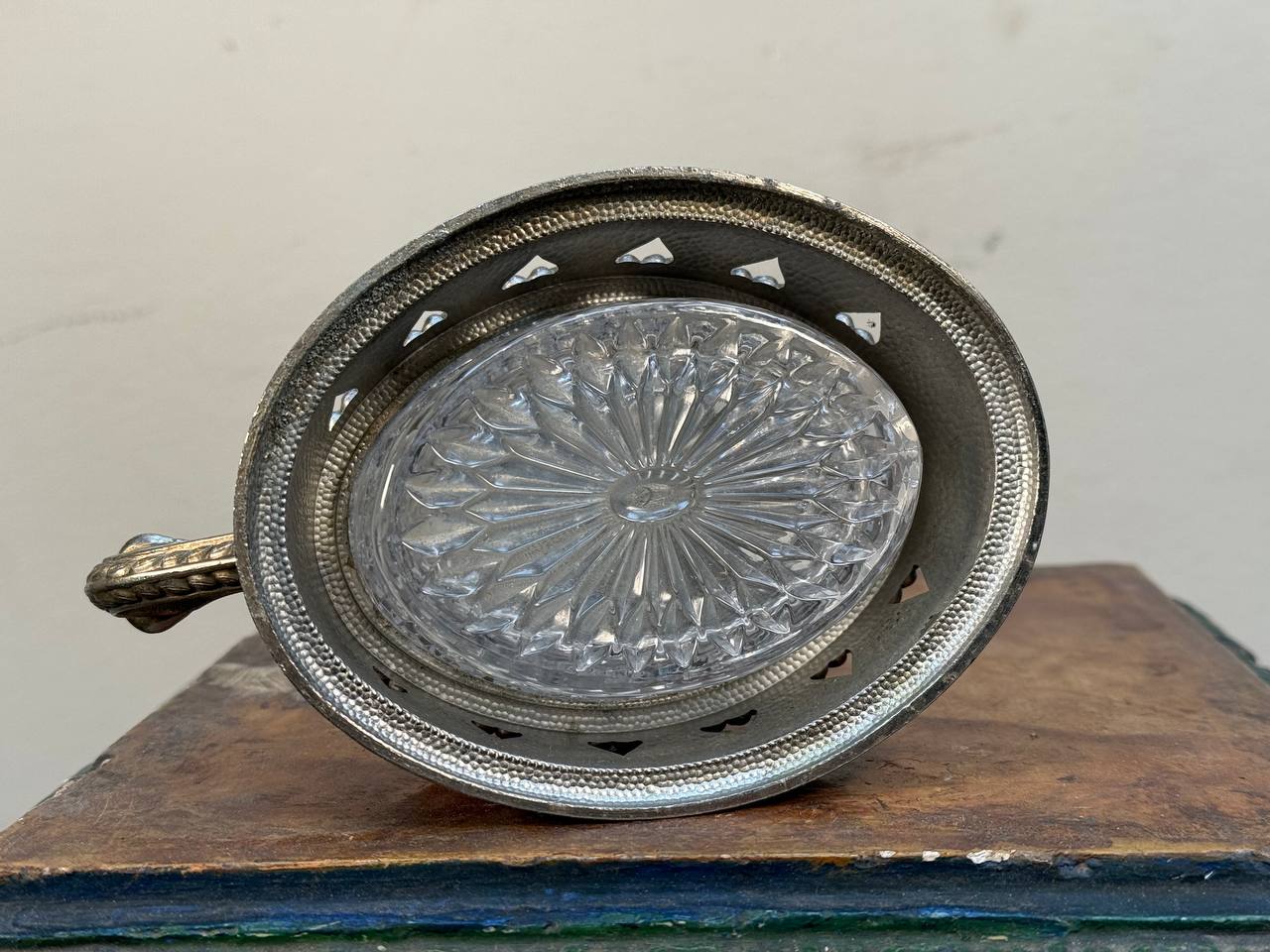 Сахарница металл/посеребрение и хрусталь. Размер на фото