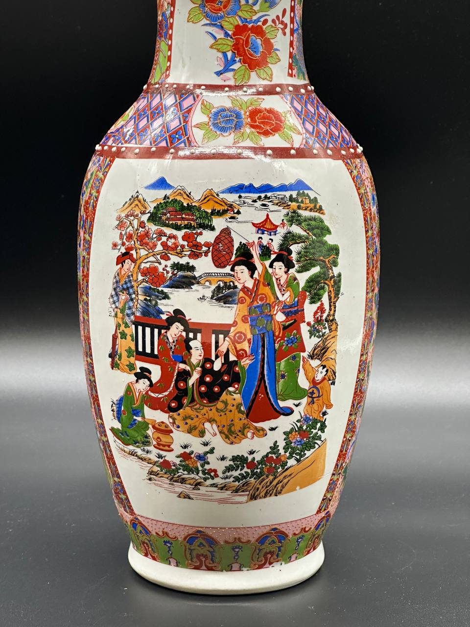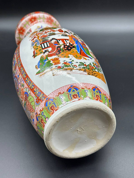 Ваза фарфор, деколь с подрисовкой, китай, середина прошлого века