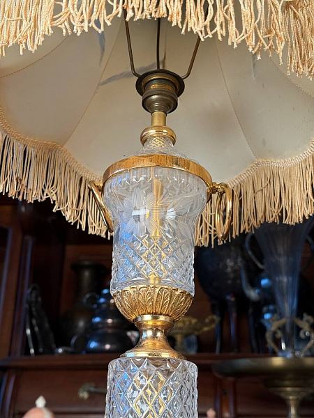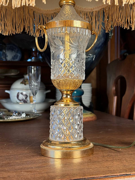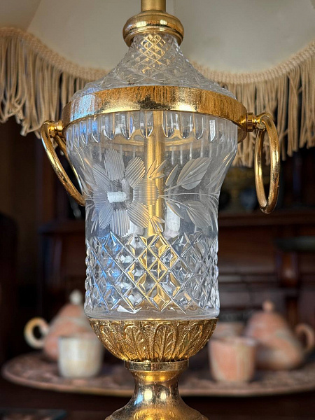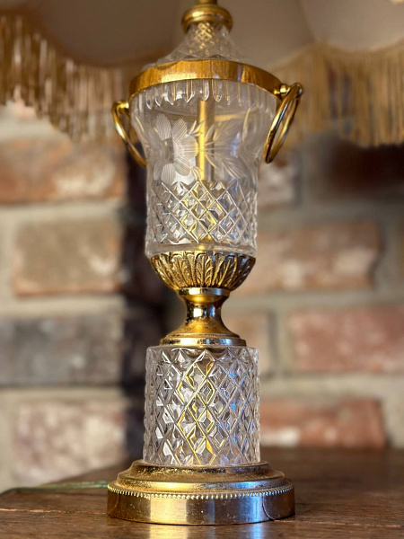 Пара настольных/прикроватных светильников латунь/хрусталь. Высота 52 см. Цена за 1 шт