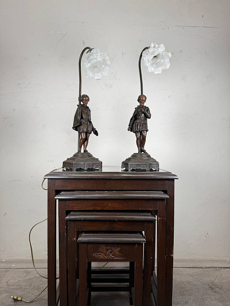 Парные настольные светильники, статуэтки шпиатр, плафоны стекло.