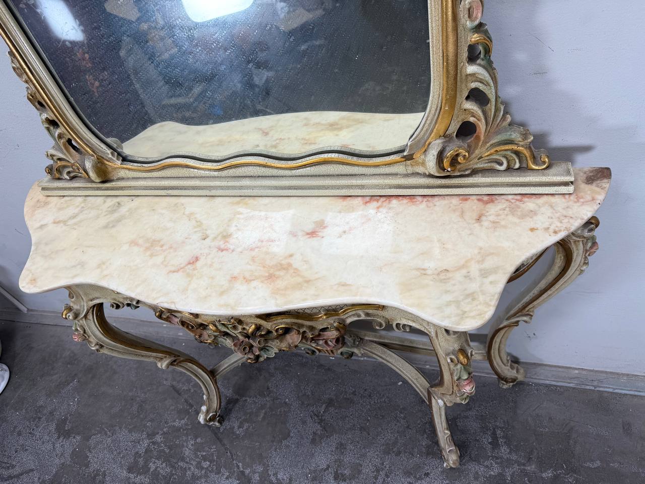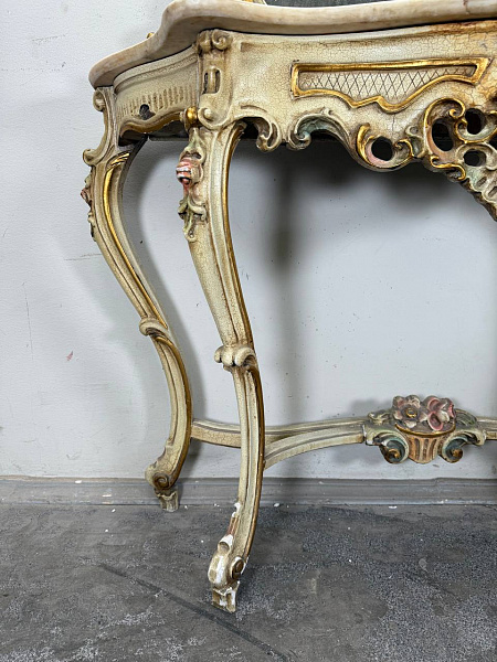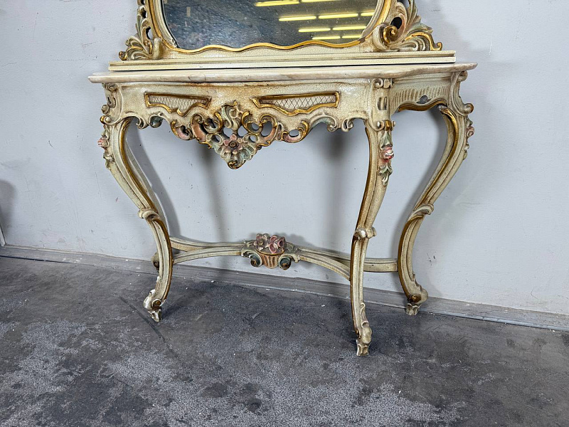 Консоль с зеркалом в стиле Луи 16, дерево/мрамор. Италия.